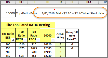 A lot of Melbourne top-Raters are ending up with a lowly 0.5% Top-Ratio bet for no other reason than their AM odds are less than $2.20.