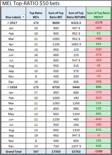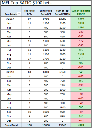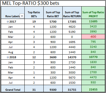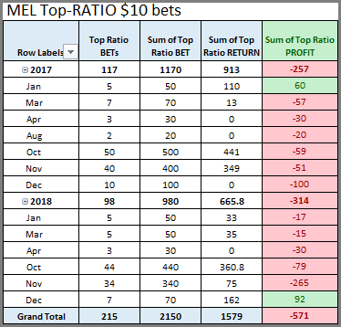 Melbourne Top-Rated Bet Ratio Results 2017-2018