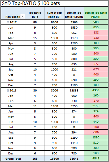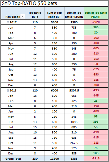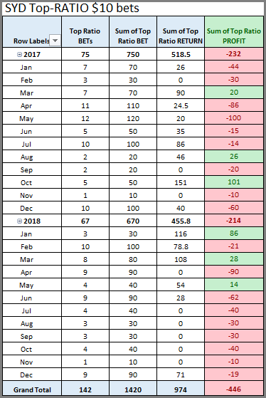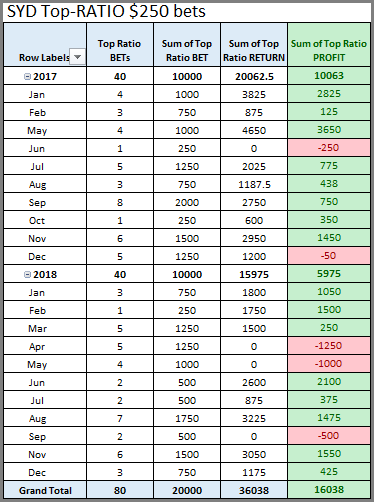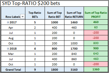 Sydney Top-Rated Bet Ratio Results 2017-2018