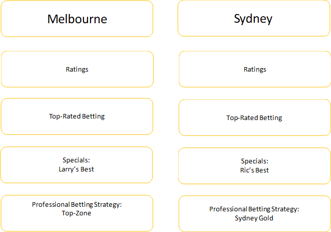 A: No problem, simply follow the list for your membership’s state. ALL the data you need for Melbourne betting can be found on the Melbourne Main Strategies raceday list and the same for Sydney.