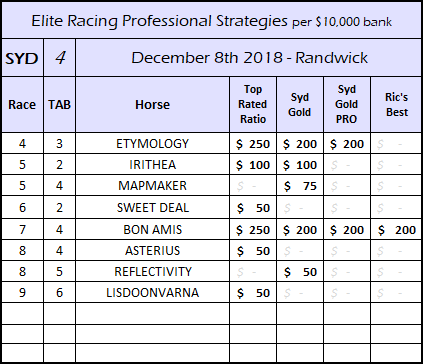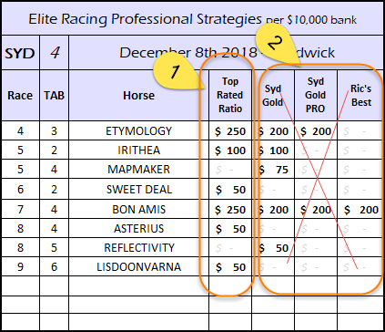 If you have set up a bank the recently-introduced Elite-Top (private filters for Syd-Mel Top-raters), direct that bank to the Top-Rated Ratio bets. READ the QA’s that follow.