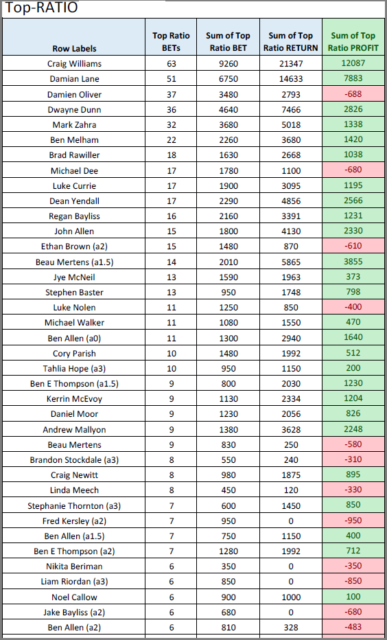 You can see that since Jan 1st 2017, C Williams has had 63 Top-Rated Ratio rides ($50 or more). His profit of $12,087 from $9260 investment is sensational.