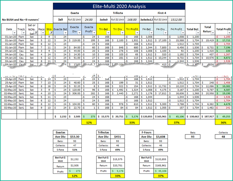 From these raw statistics for 2020 and the pdf Elite Multi results 2020 printout, you can see why a lot of members swear by the multi bets.
